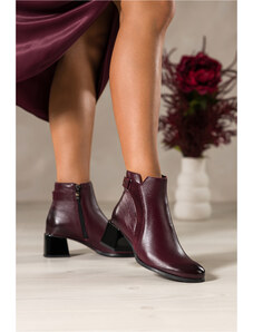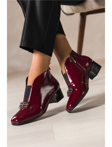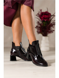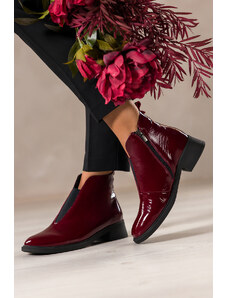 Bordowe botki skórzane damskie lakierowane na niskim obcasie wycięta cholewka z elastyczną gumą PRODUKT POLSKI Casu 380