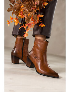 Brązowe botki skórzane damskie kowbojki na szerokim ściętym klocku PRODUKT POLSKI Casu 39434
