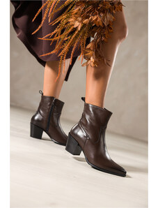 Czekoladowe botki skórzane damskie kowbojki na ściętym klocku wycięta cholewka PRODUKT POLSKI Casu 5484