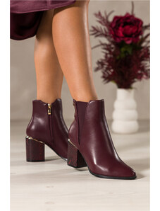 Bordowe botki skórzane damskie na ozdobnym klocku guma w cholewce pasek ze stalową ozdobą PRODUKT POLSKI Casu 39563