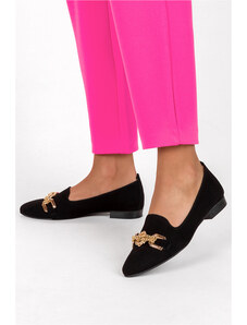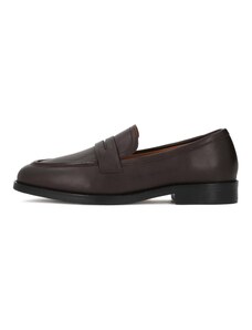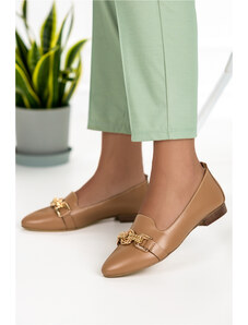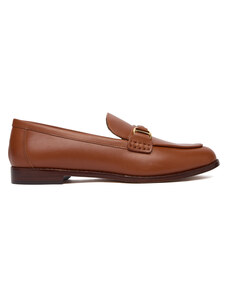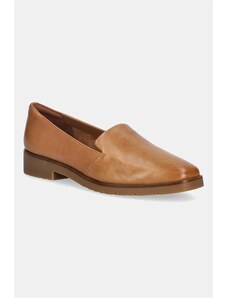 Brązowe mokasyny skórzane damskie półbuty płaskie z ozdobnym kwiatem na cholewce PRODUKT POLSKI Casu 8105