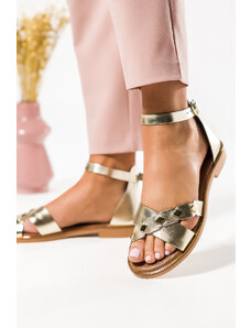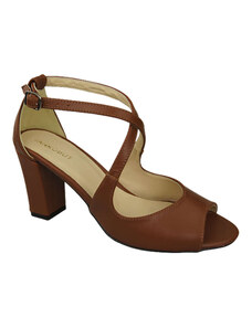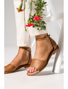Brązowe sandały skórzane damskie płaskie z zakrytą piętą pasek wokół kostki PRODUKT POLSKI Casu 40225