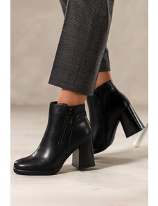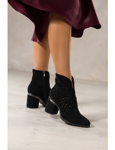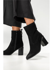 Czarne botki damskie z gumą na ozdobnym obcasie Casu D212X10-B