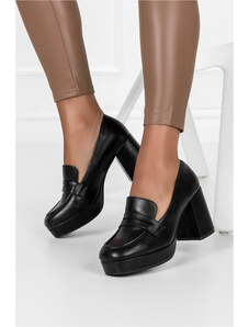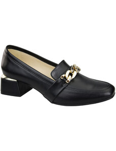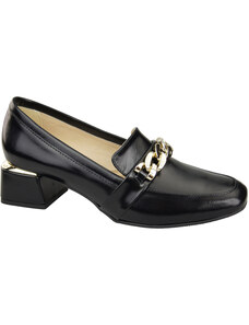 Czarne mokasyny skórzane damskie na ozdobnym klocku PRODUKT POLSKI Casu 09163