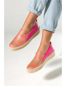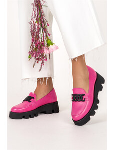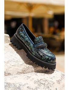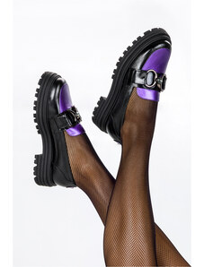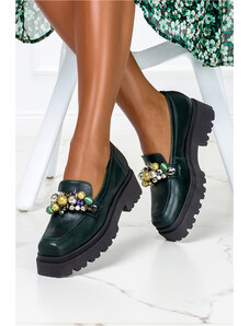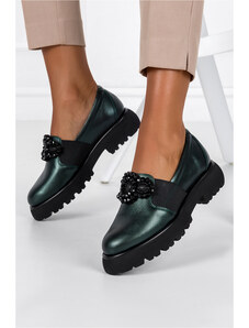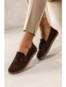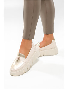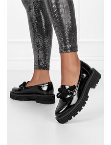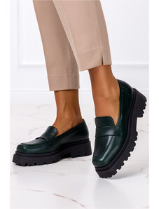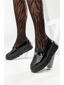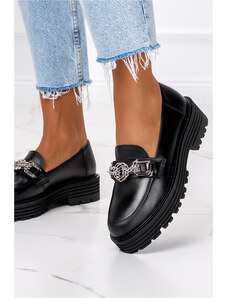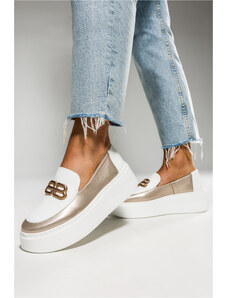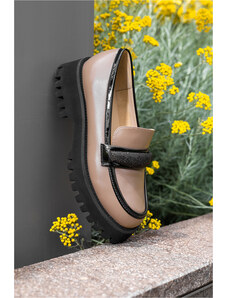 Czekoladowe mokasyny skórzane damskie bieżnikowana czarna platforma złota ozdoba PRODUKT POLSKI Casu 79802