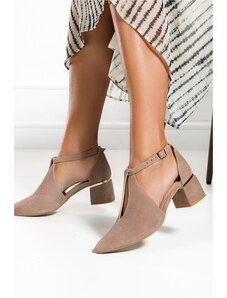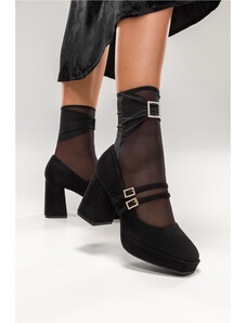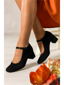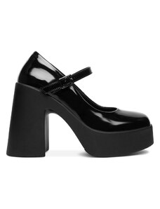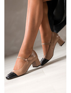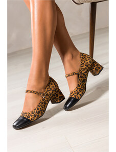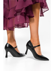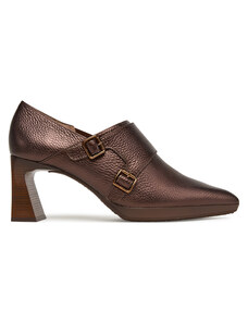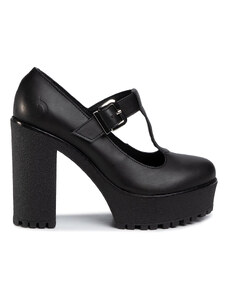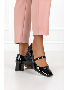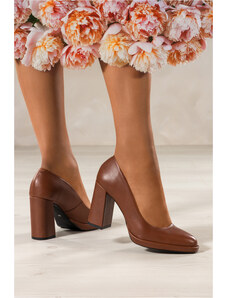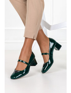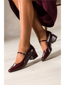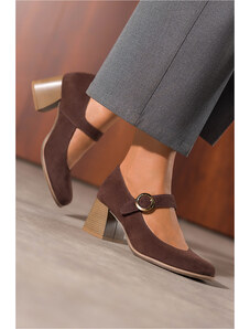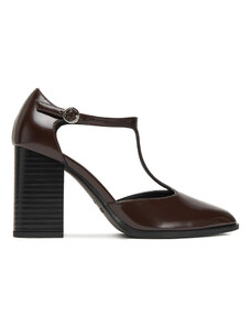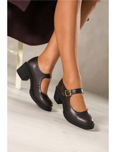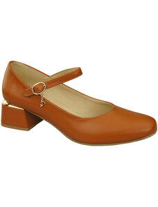 Czekoladowe półbuty skórzane damskie Mary Jane na szerokim klocku bieżnikowana platforma pasek ze złotą klamrą PRODUKT POLSKI Casu 79833