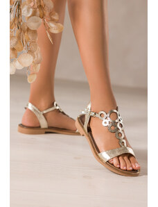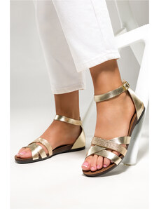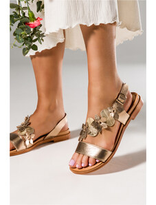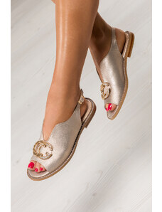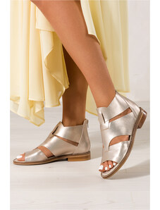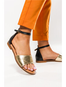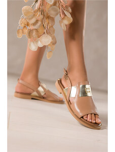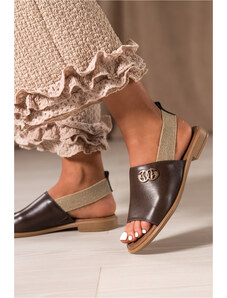 Czekoladowe sandały skórzane damskie na rzep elastyczna płaska podeszwa paski na krzyż z miedzianym wzorem PRODUKT POLSKI Casu 59858