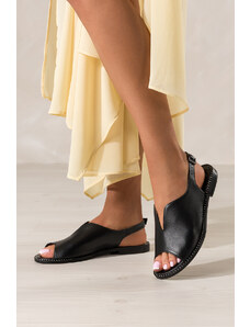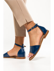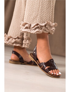 Czekoladowe sandały skórzane damskie z gumką elastyczna płaska podeszwa paski na krzyż PRODUKT POLSKI Casu 59592