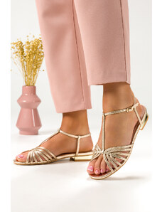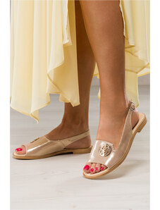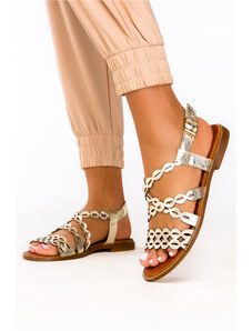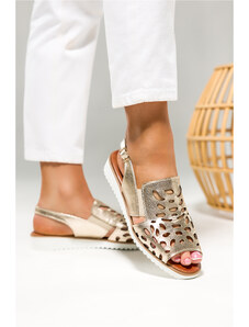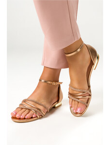 Fuksjowe sandały skórzane damskie metaliczne ażurowe płaskie t-bar PRODUKT POLSKI Casu 3284