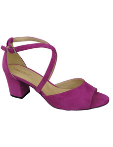Fuksjowe sandały skórzane na klocku z zakrytą piętą PRODUKT POLSKI Casu 2321