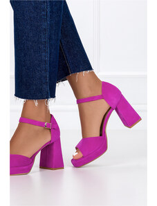 Fuksjowe sandały skórzane na ozdobnym słupku z zakrytą piętą pasek wokół kostki PRODUKT POLSKI Casu 2324