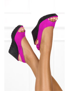 Fuksjowe sandały na koturnie z kryształkami POLSKA SKÓRA Casu 1964-159
