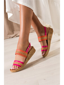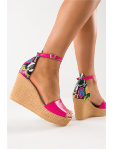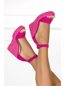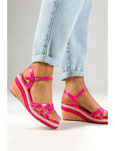 Fuksjowe sandały espadryle damskie lakierowane na kolorowym koturnie Casu U24X7-F