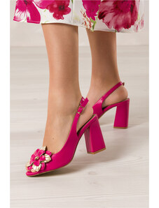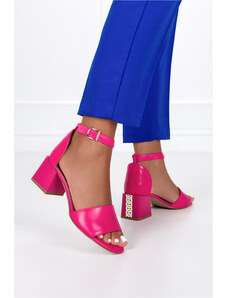 Fuksjowe sandały błyszczące damskie na niskim ozdobnym obcasie Casu U24X8-F