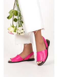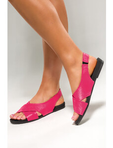 Fuksjowe sandały skórzane damskie płaskie PRODUKT POLSKI Casu 2675-221