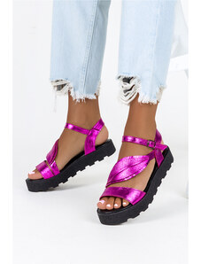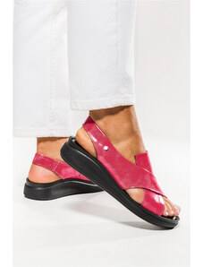 Fuksjowe sandały skórzane damskie na platformie z liściem PRODUKT POLSKI Casu 937