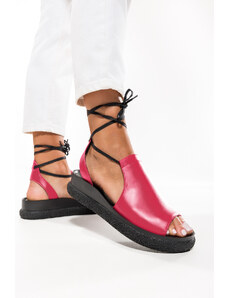 Fuksjowe sandały skórzane damskie na koturnie zabudowane wiązane PRODUKT POLSKI Casu 970