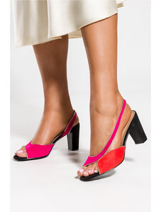 Fuksjowe sandały skórzane damskie na ozdobnym kolorowym słupku PRODUKT POLSKI Casu 1922-204-837