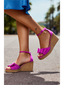Fuksjowe sandały skórzane damskie espadryle na ozdobnym koturnie PRODUKT POLSKI Casu 2339