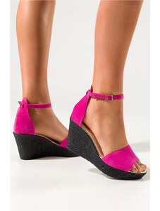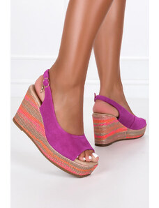 Fuksjowe sandały skórzane damskie na koturnie PRODUKT POLSKI Casu 1911