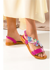 Fuksjowe sandały z ozdobą damskie płaskie z zakrytą piętą Casu K24X2-F