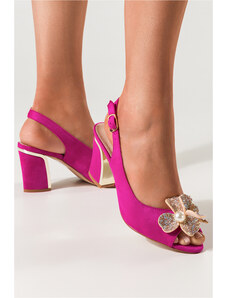 Fuksjowe sandały damskie na ozdobnym słupku kwiat z cyrkoniami i perłą skórzana wkładka Casu D25X3-F