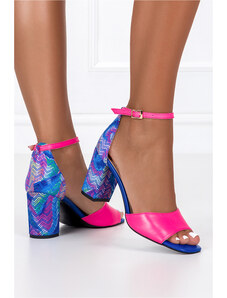 Fuksjowe sandały damskie na kolorowym słupku złote dodatki skórzana wkładka Casu ER25X12-F