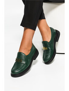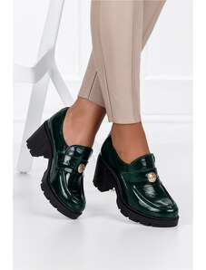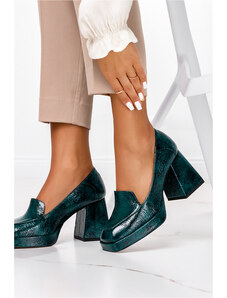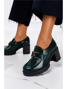 Zielone mokasyny skórzane lakierowane damskie na słupku z cyrkoniami PRODUKT POLSKI Casu 20157-NO