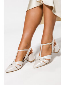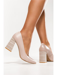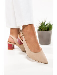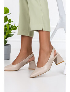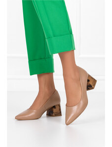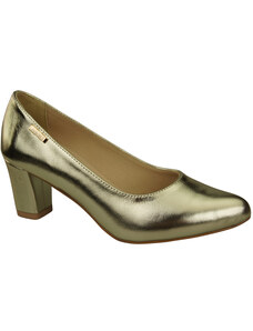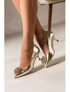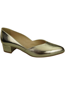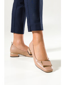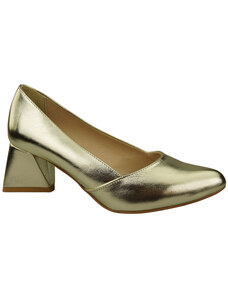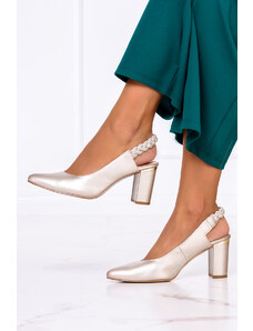 Złote czółenka skórzane damskie na niskim obcasie odkryta pięta złota ozdoba PRODUKT POLSKI Casu 7074-291