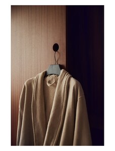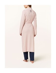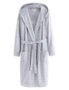 Bardzo lekki welurowy materiał. Kołnierz szalowy. Boczne kieszenie wpuszczane. Wiązany pasek z podwójnymi szlufkami do regulacji. Pętelka do wieszania. Wzór w paski. Można prać w pralce i suszyć w suszarce. Wyprodukowano w Niemczech