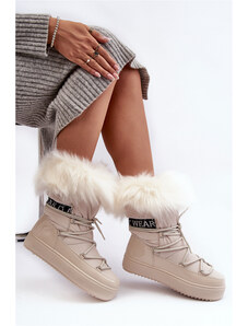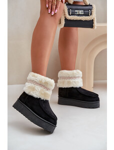 Butosklep Śniegowce Damskie Na Platformie Z Futerkiem I Wzorem Czarne Deepanti