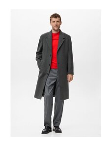 MANGO MAN - Długi wełniany płaszcz szary - M - Mężczyzna