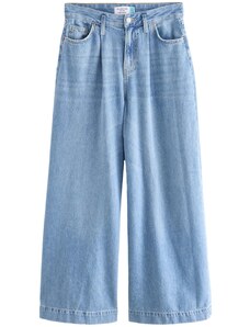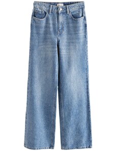 Design: Ściągacz ze sznurkiem, Rozporek na zamek błyskawiczny, Tylne kieszenie, Boczne kieszenie; Rodzaj zamknięcia: Zamek błyskawiczny; Materiał: Jeans; Wzór: Jednolite kolory; Dodatki: Szwy w jednym odcieniu, Mocny materiał, Szlufki na pasek; Pranie: Delikatny efekt sprania; Długość: Długi / Maxi; Krój: Szeroka nogawka; Wysokość talii: Wysoka talia. R-0.19. P-0.4477875981. RQ-
