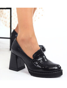 Półbuty skórzane czarne na słupku Exquisite