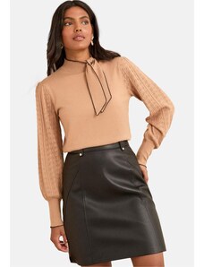 Design: Proste zakończenie, Zamek błyskawiczny na plecach; Rodzaj zamknięcia: Zamek błyskawiczny; Materiał: Skóra; Wzór: Jednolite kolory; Krój spódnicy: Spódniczka mini; Dodatki: Szwy w jednym odcieniu, Gładki w dotyku, Gładka tkanina; Długość: Krótkie/Mini; Krój: Krój podkreślający figurę. R-0.37. P-0.3081982464. RQ-0.55