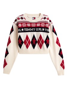 Tommy Jeans Sweter 'FAIR ISLE' ecru / krwistoczerwony / czarny