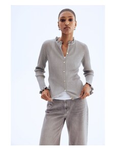 H&M - Sweter w prążki z suwakiem u góry - Szary
