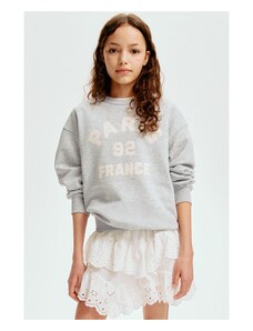 Luźna bluza z dzianiny dresowej z nadrukiem. Wewnątrz miękki meszek. Okrągły dekolt ze ściągaczem, obniżone ramiona i długie rękawy. Rękawy i dół ze ściągaczem.