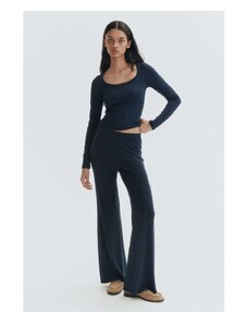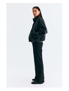 Spodnie z błyszczącego dżerseju. Wysoki stan, elastyczna talia, proste nogawki.