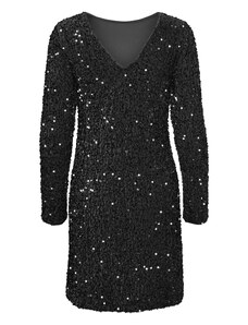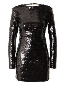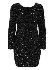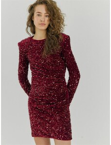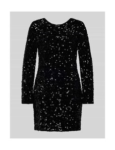 Podkreślająca figurę welurowa sukienka mini pokryta cekinami. Długie rękawy, z tyłu głęboki dekolt w serek. Z podszewką.