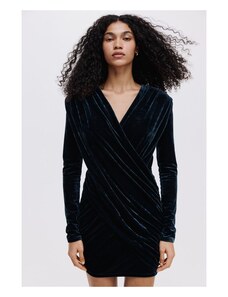 H&M - Welurowa drapowana sukienka mini - Turkusowy