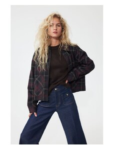 H&M - Kurtka z diagonalu ze sztruksowym kołnierzem - Brązowy