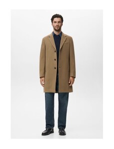 MANGO MAN - Długi wełniany płaszcz średni brązowy - M - Mężczyzna