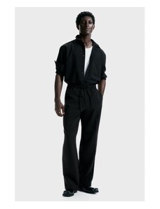Czarne Spodnie Lniane Męskie Alberto House-pure Linen