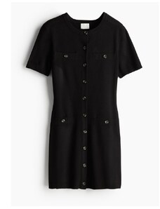 H&M - Dzianinowa sukienka z guzikami z przodu - Czarny