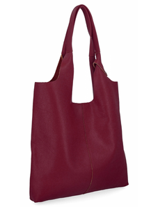 Other Włoska Torebka Skórzana Shopper Bag z Kosmetyczką 165 Ciemno Bordowa