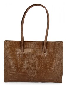 Vittoria Gotti Klasyczne Torebki Skórzane we wzór Aligatora Aktówka A4 Czekolada
