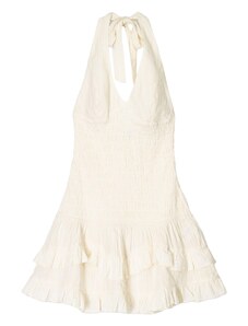 Materiał: Bawełna; Dekolt: Dekolt w serek; Wzór: Jednolite kolory; Rodzaj ramiączka: Wiązanie na szyi; Detale: Falbany, Falbanka kloszowa, Drapowanie / marszczenie, Wzór z dziurkami, Bez pleców; Długość: Krótkie/Mini; Krój: Luźny krój; Długość rękawa: Bez rękawów. R-0. P-0.4809844182. RQ-0.49