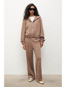 J STYLE Welurowy dres damski z rozpinaną bluzą umbra (8C1176-161)