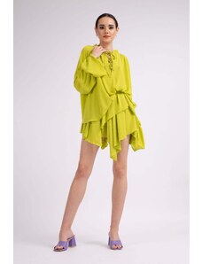 BLUZAT Neon green set with shirt and asymmetrical skirt S / Green